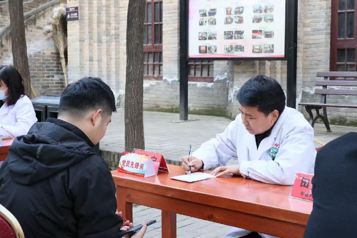 义诊服务在袁家村广场开展。基础医学院专家团队耐心细致地为前来咨询的群众问诊把脉、辨证施治,并现场开展耳穴、推拿等中医适宜技术治疗。