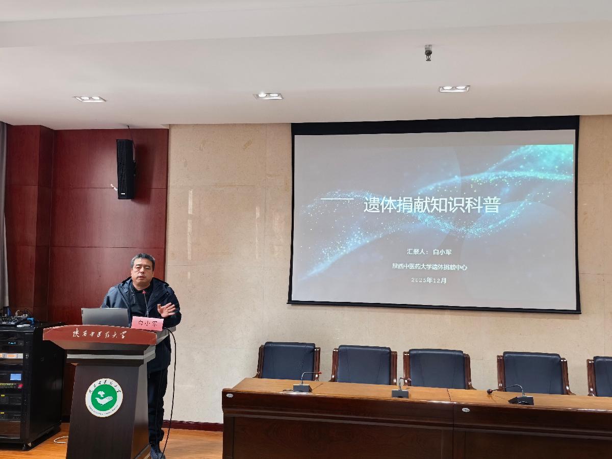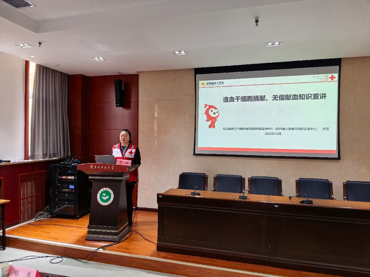 2025年12月23日上午10:00,由咸阳市红十字会主办、陕西中医药大学基础医学院承办的“三献知识进高校”活动在5号教学楼5101顺利举行。本次活动旨在普及无偿献血、造血干细胞捐献和人体器官捐献相关知识,弘扬“人道、博爱、奉献”的红十字精神。