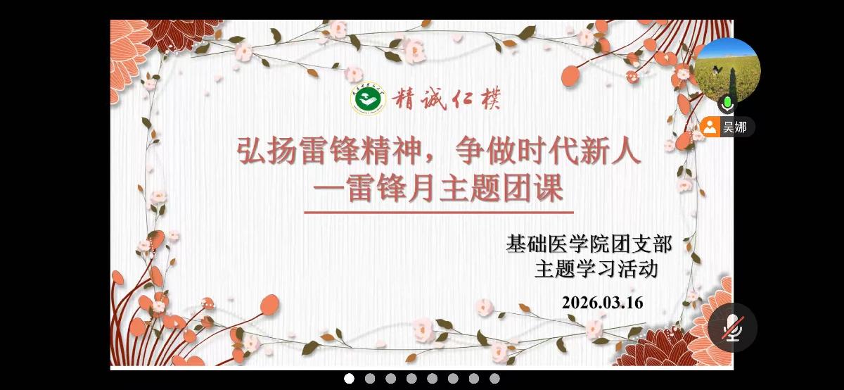 “弘扬雷锋精神,争做时代新人” 主题团课,带领青年学子深学细悟雷锋精神的时代内涵,感悟医者仁心与奉献担当。线上学习创新教育形式、厚植思想根基,进一步激发同学们的服务热情,为线下义诊志愿服务做好充分准备。
